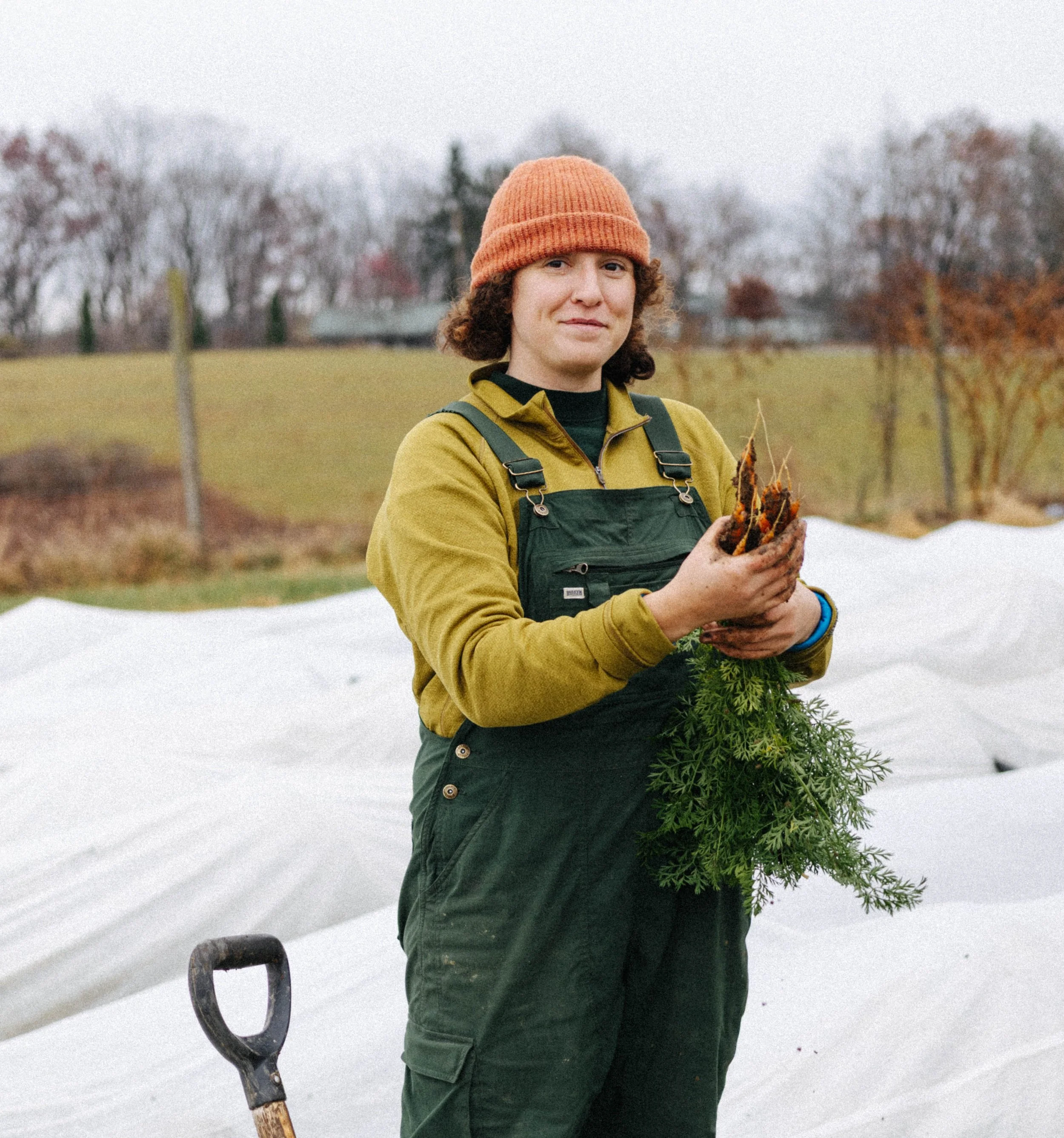 Grayson came to the farm Spring 2025, looking to move back to his home state of West Virginia, hoping to do work that leaves a positive impact in his community, and wanting to learn more about agriculture and sustainable food systems. Grayson is also a freelance artist and illustrator, whose work focuses on natural science and the outdoors, and you can follow his work online @mossymorels. In his free time, you can find him rock climbing, paddling on the river, painting, or reading in his hammock.